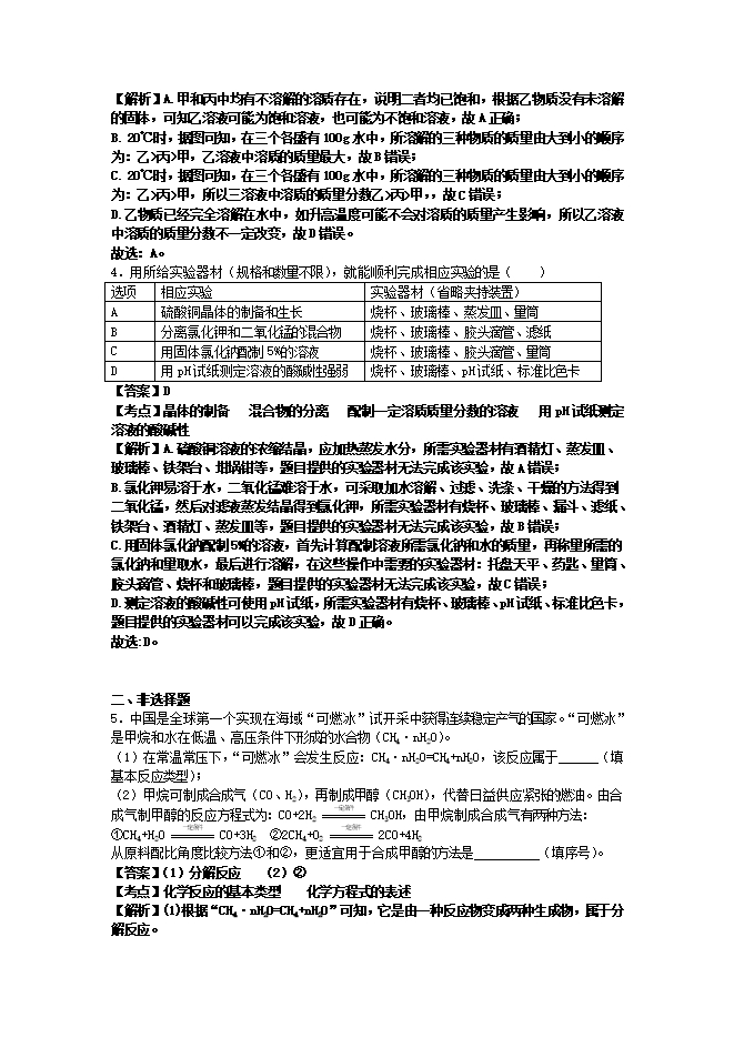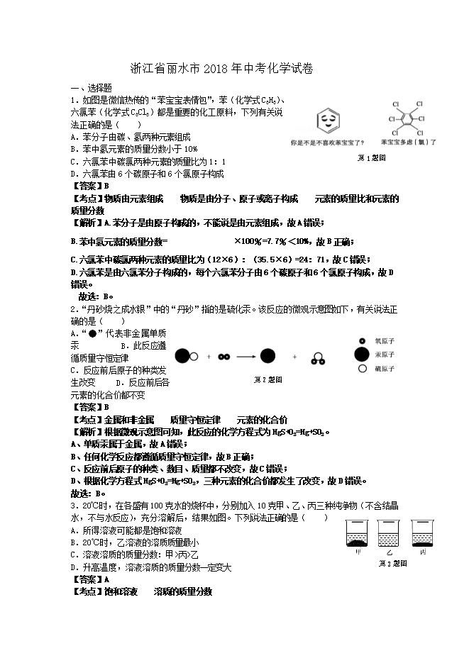 2018年浙江省丽水市中考化学试题(word版,含答案解析)