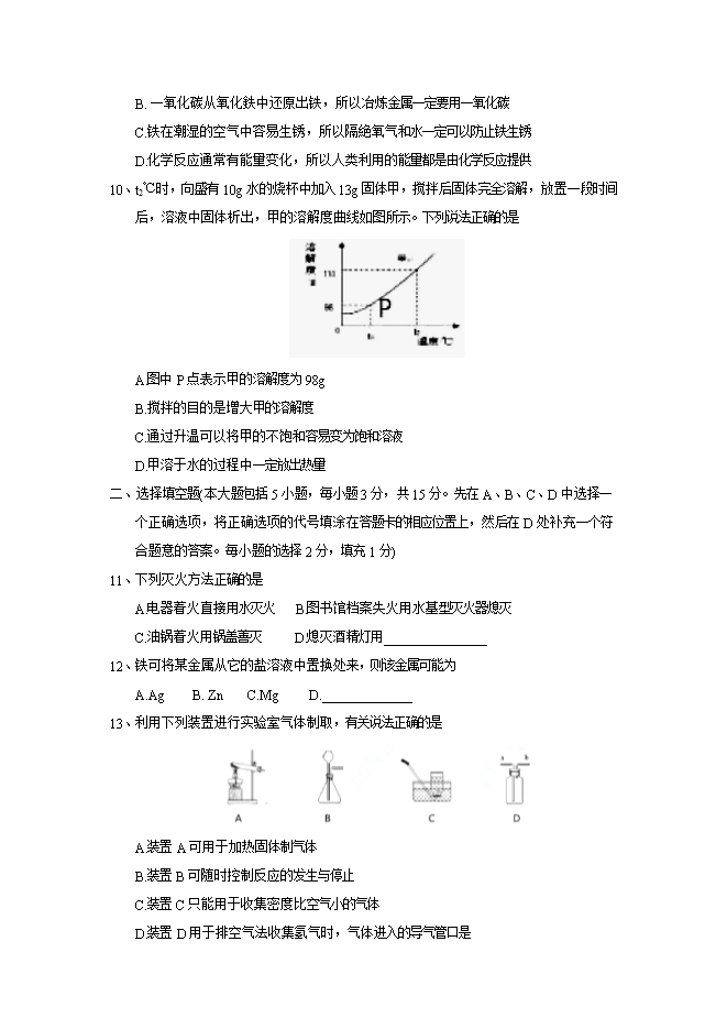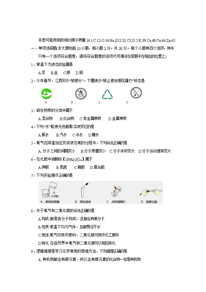 2018年江西省中考化学试题(word版,含答案)