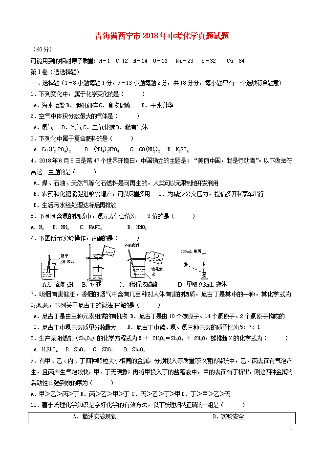 所属专辑: 《2018年各省市中考化学真题》专辑