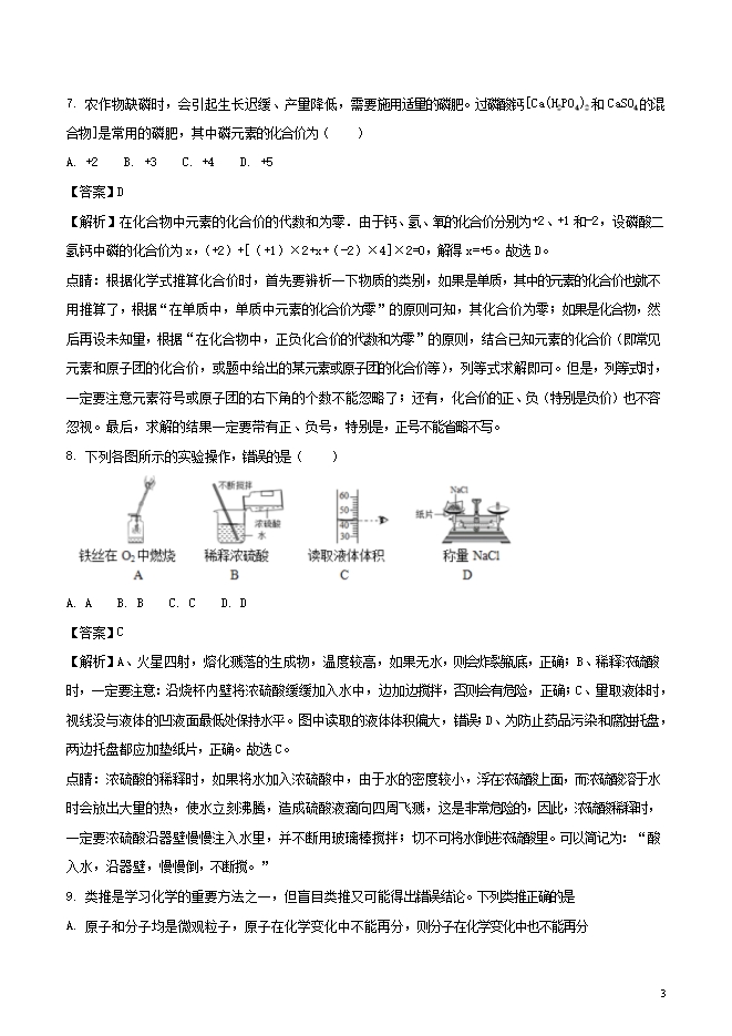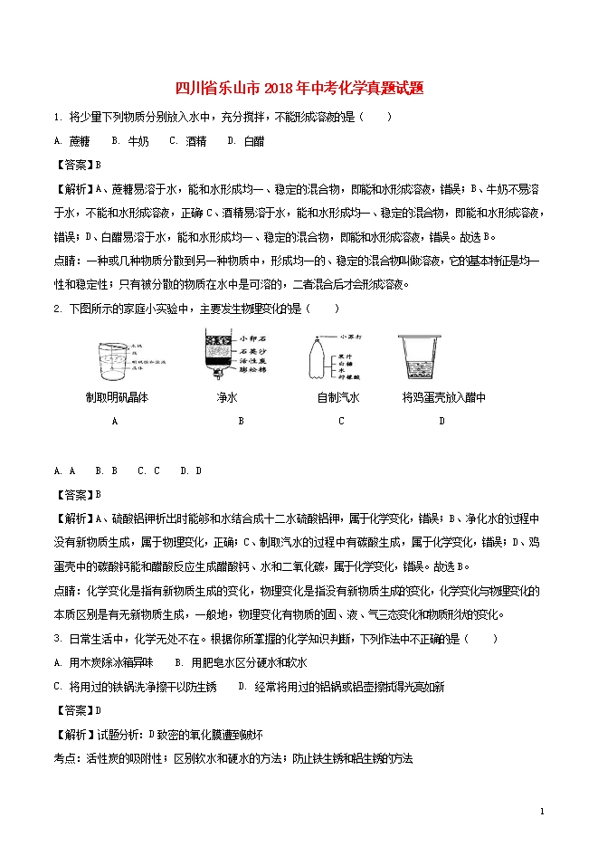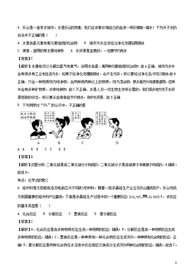2018年四川省乐山市中考化学试题(word版,含答案解析)
