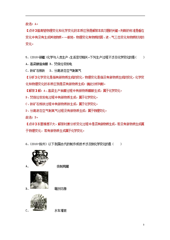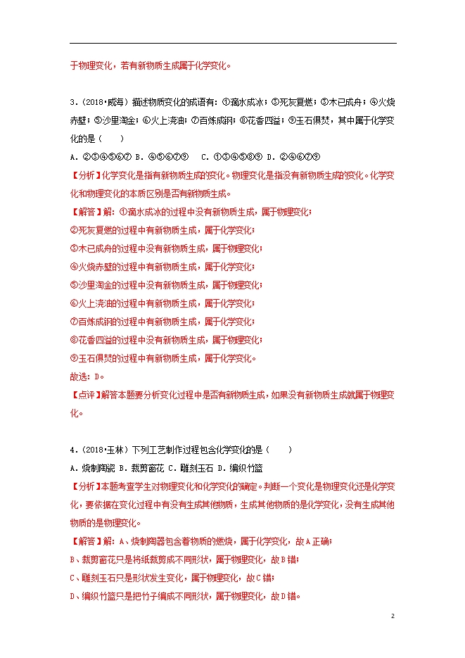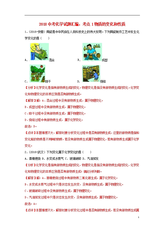 2018中考化学试题汇编(一)考点1物质的变化和性质(含解析)