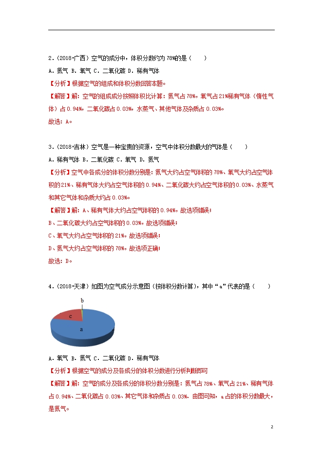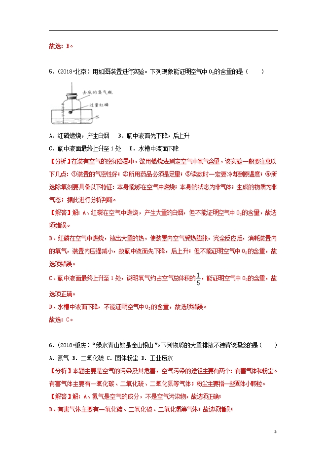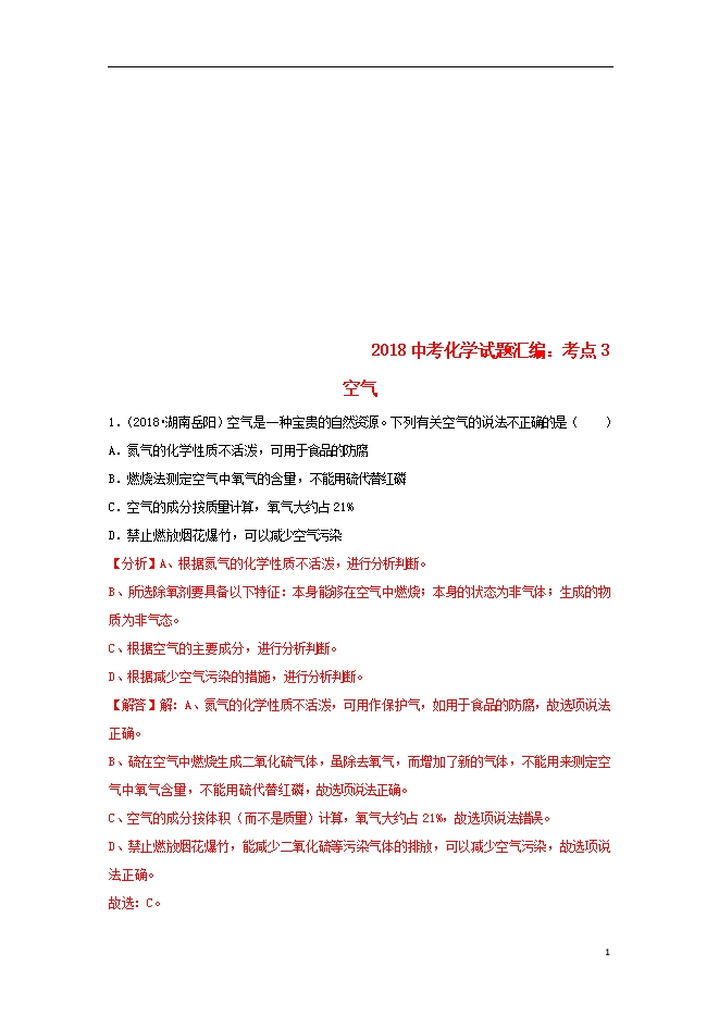 2018中考化学试题汇编(一)考点3空气(含解析)