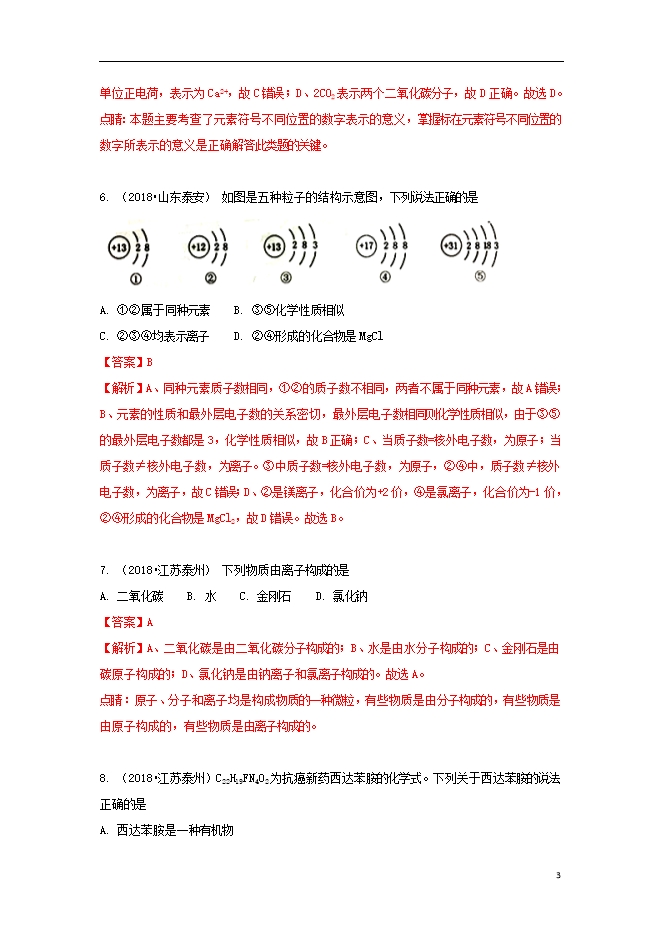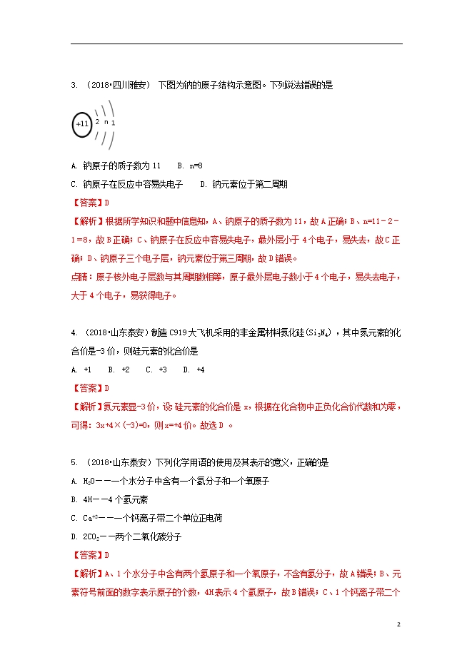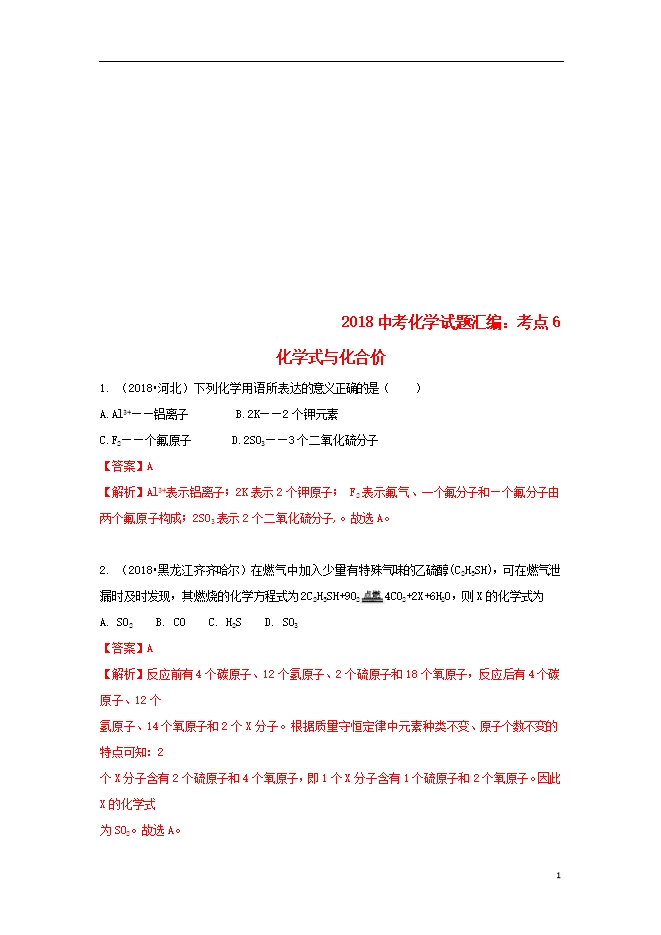 2018中考化学试题汇编(一)考点6化学式与化合价(含解析)