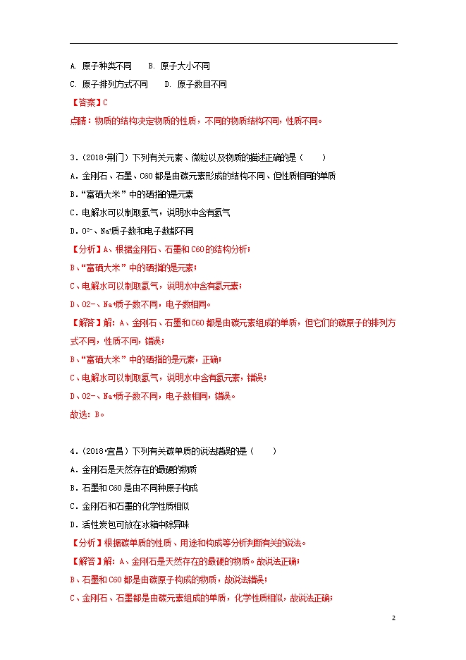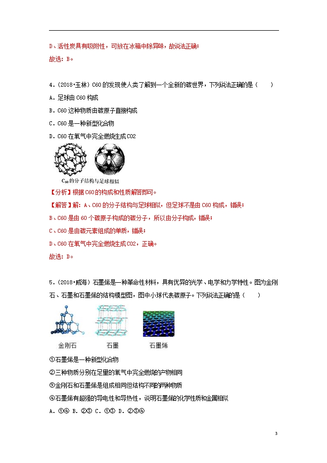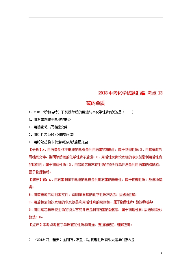 2018中考化学试题汇编(一)考点13碳的单质(含解析)