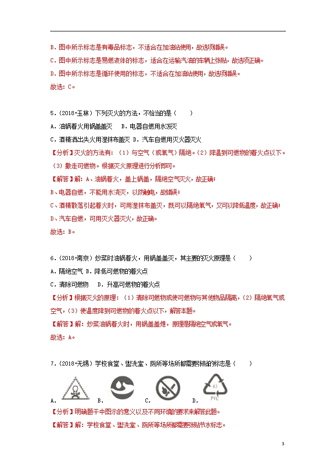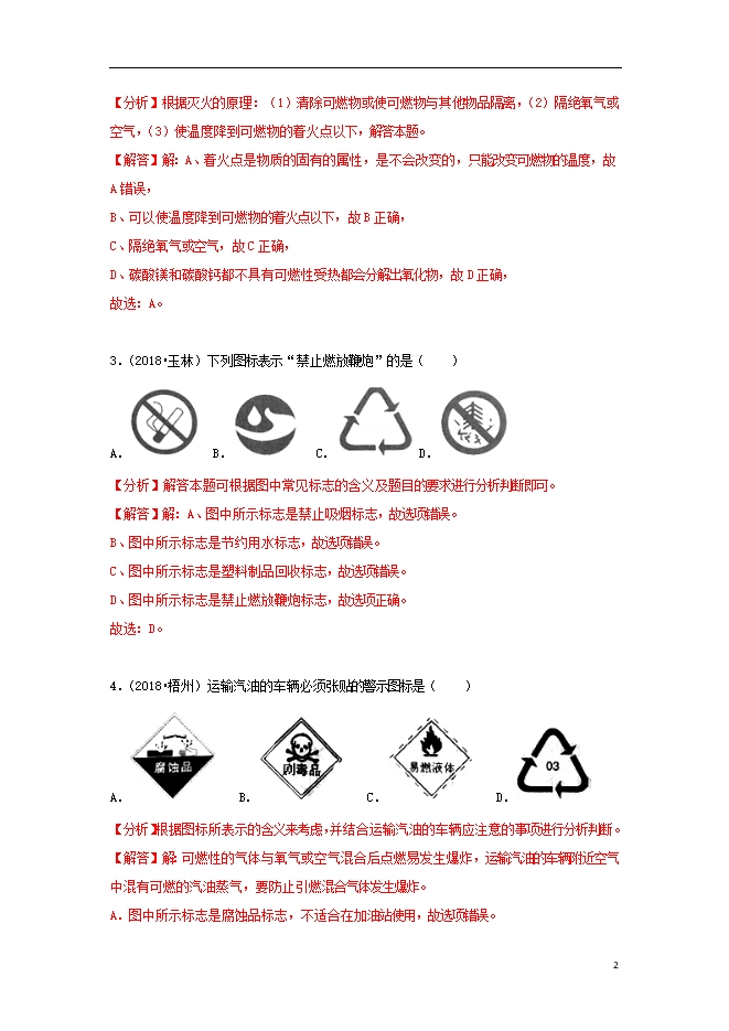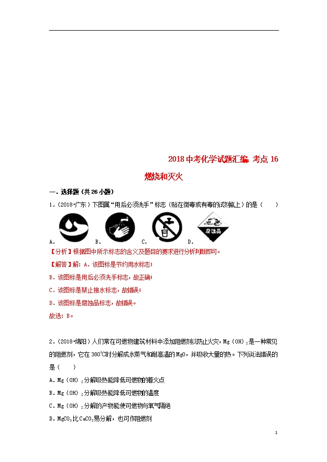 2018中考化学试题汇编(一)考点16燃烧和灭火(含解析)