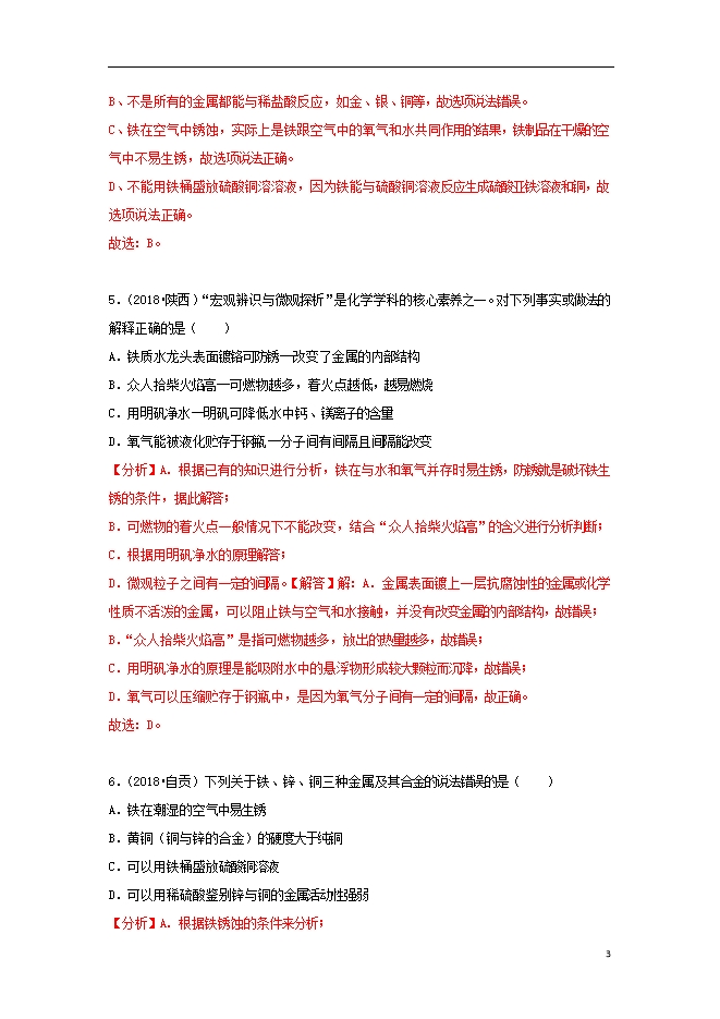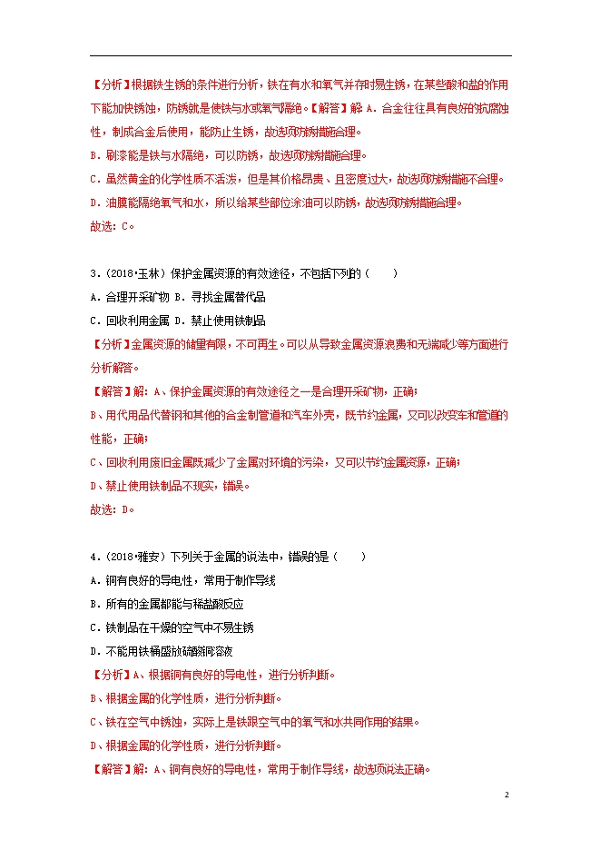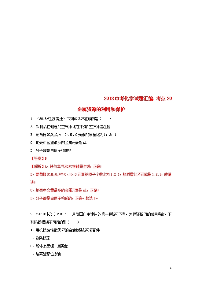 2018中考化学试题汇编(一)考点20金属资源的利用和保护(含解析)
