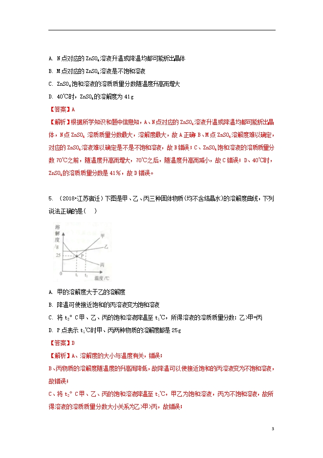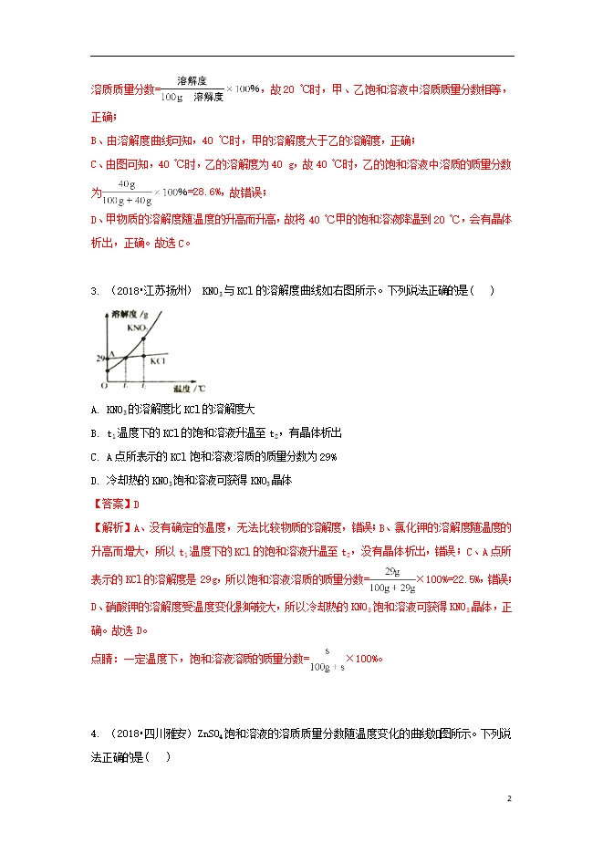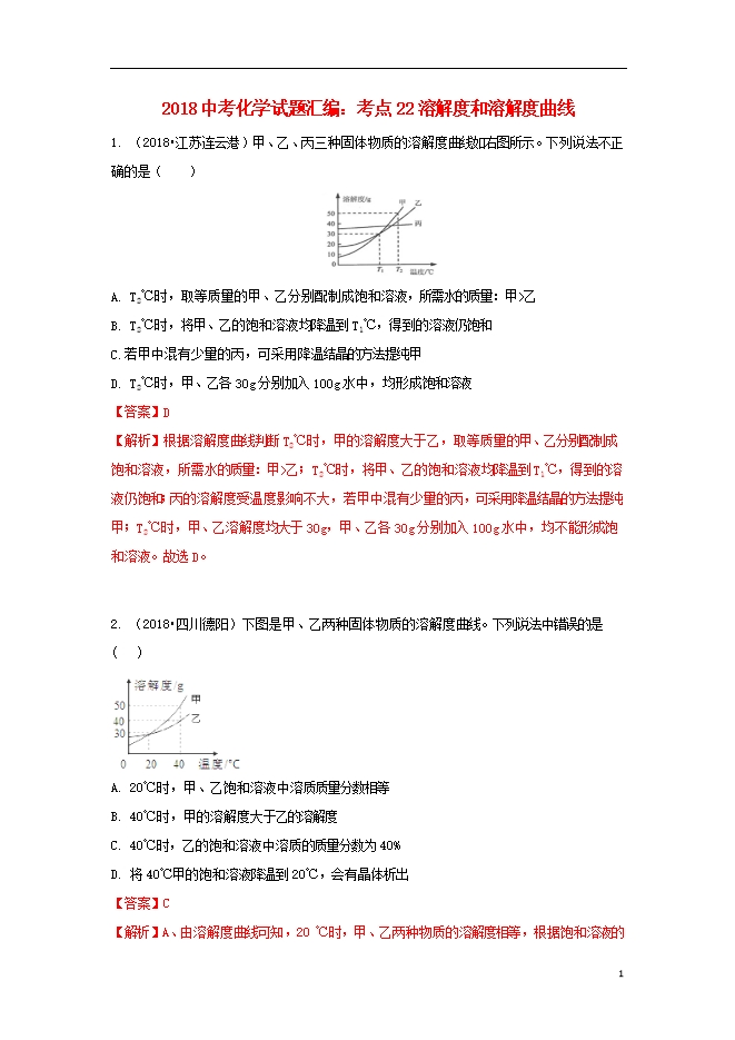 2018中考化学试题汇编(一)考点22溶解度和溶解度曲线(含解析)