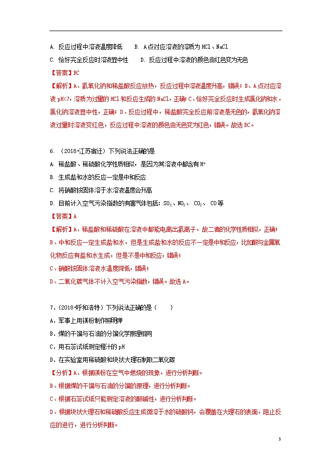 所属专辑: 《2018年中考化学试题分类汇编》专辑