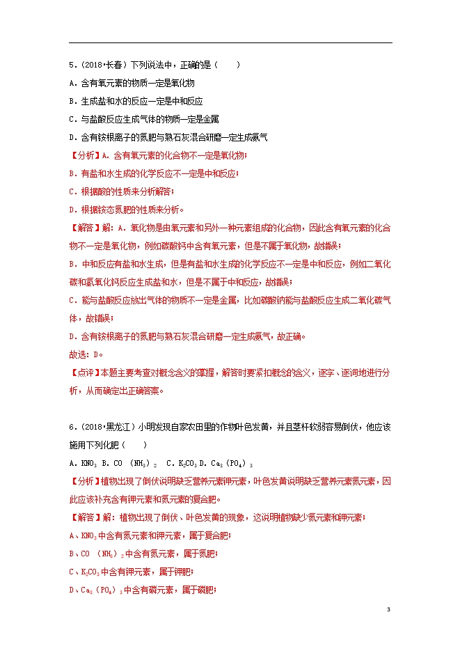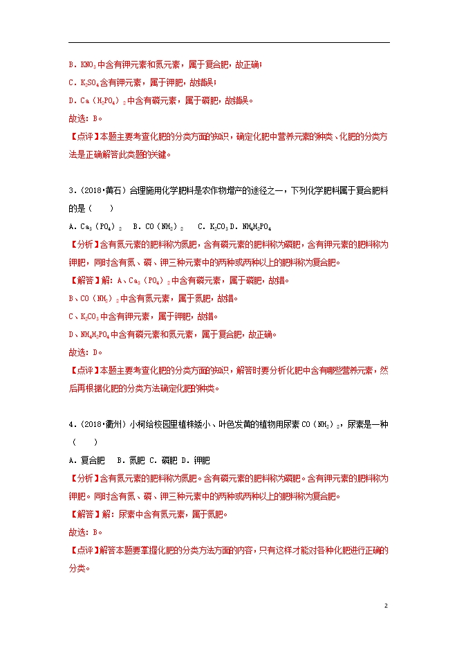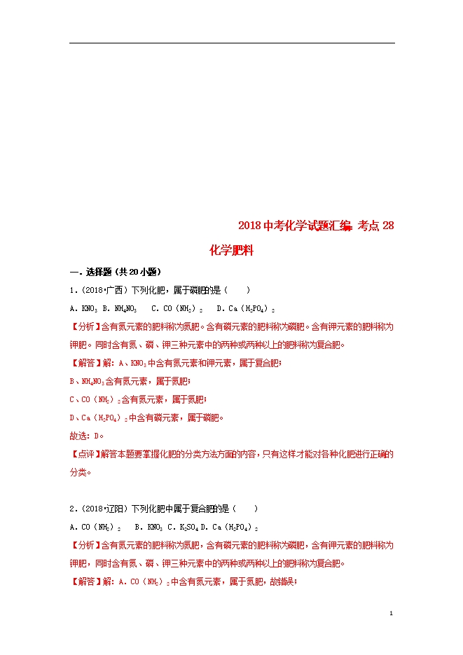 2018中考化学试题汇编(一)考点28化学肥料(含解析)