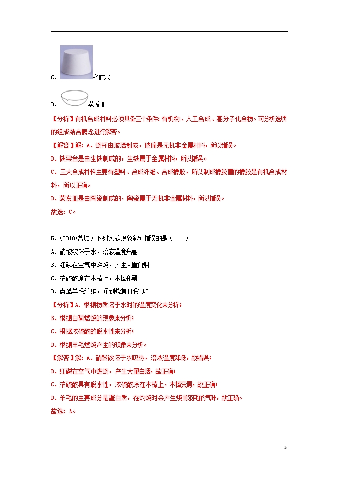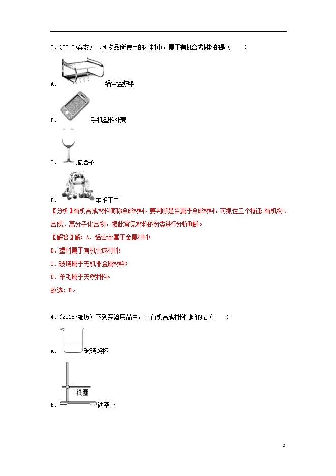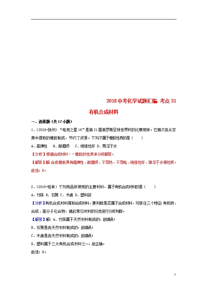 2018中考化学试题汇编(一)考点31有机合成材料(含解析)