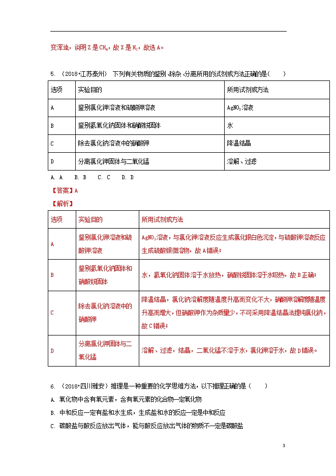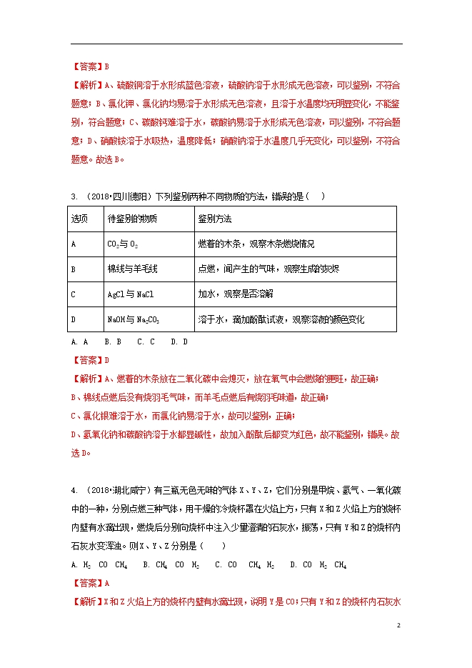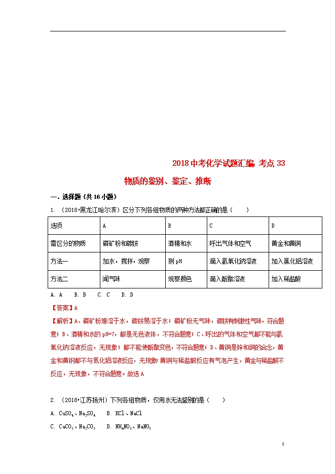 2018中考化学试题汇编(一)考点33物质的鉴别、鉴定、推断(含解析)