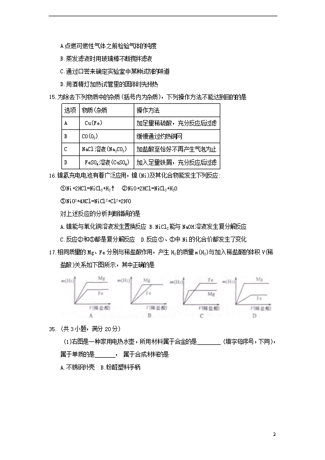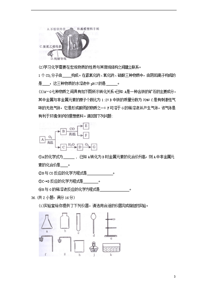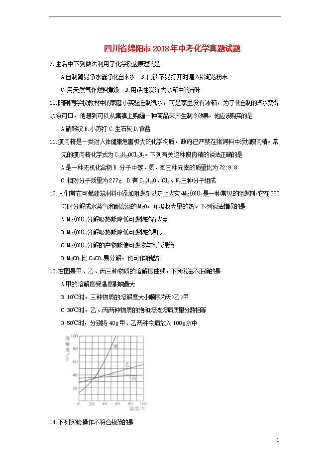 2018年四川省绵阳市中考化学试题(word版含答案)