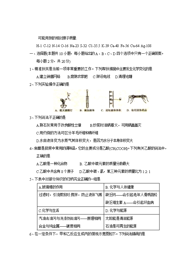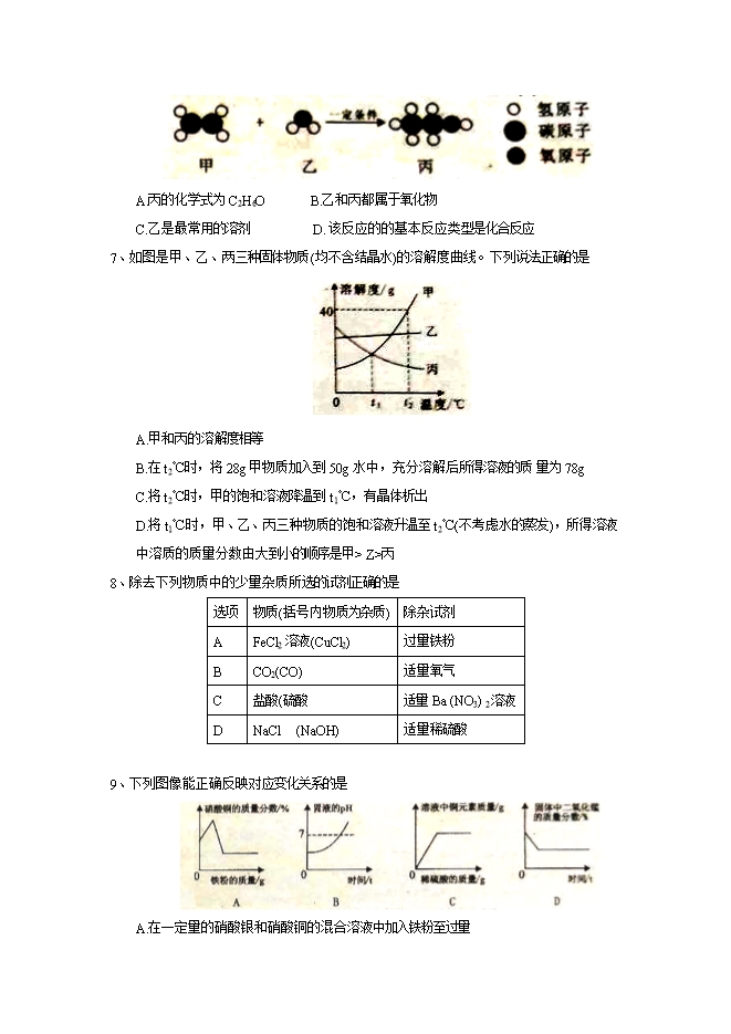 2018年湖北省孝感市中考化学试题(word版,含答案)