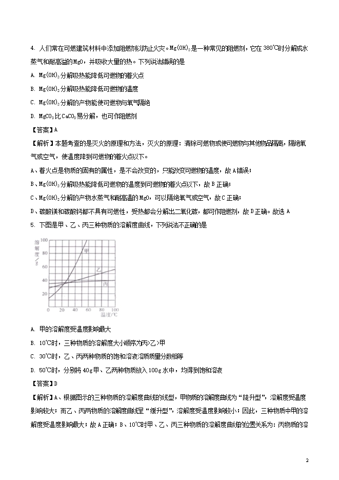 所属专辑: 《2018年各省市中考化学真题》专辑