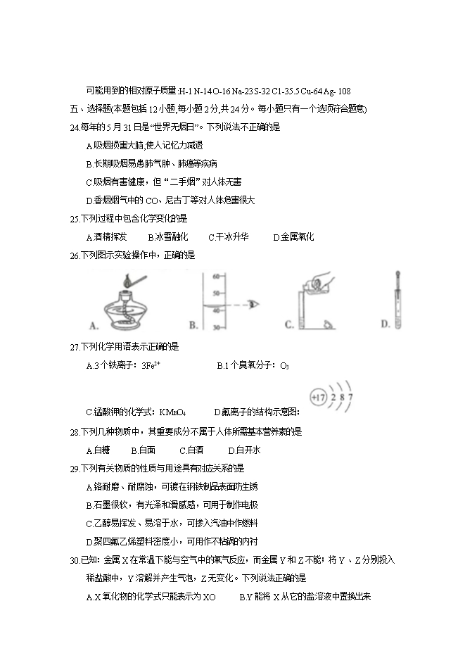 2018年江苏省连云港市中考化学试题(word版,含答案)