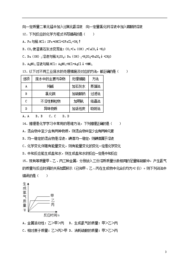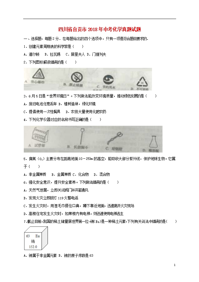 2018年四川省自贡市中考化学试题(word版含答案)