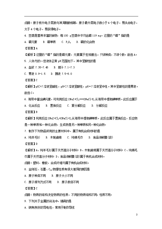 所属专辑: 《2018年各省市中考化学真题》专辑
