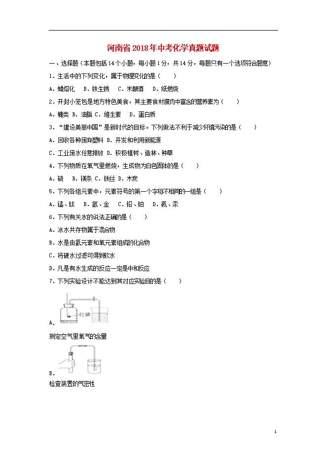 2018年河南省中考化学试题(word版,含答案解析)