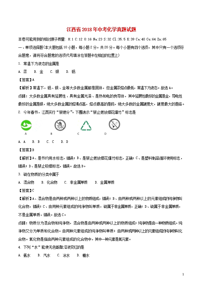 所属专辑: 《2018年各省市中考化学真题》专辑