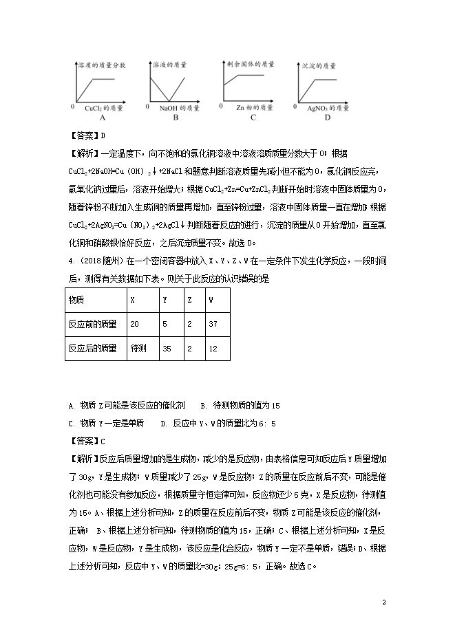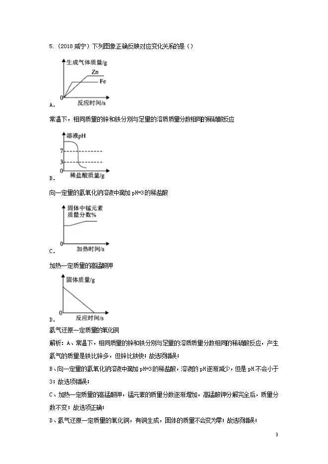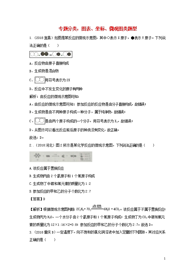 2018中考化学真题分类汇编(二)专题分类:图表、坐标、微观图类题型(含解析)