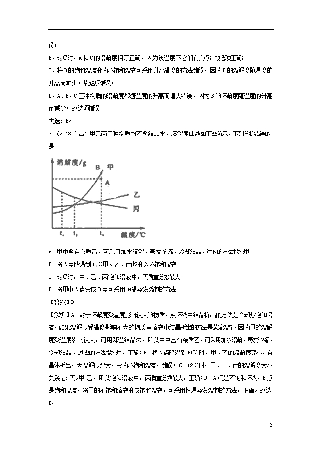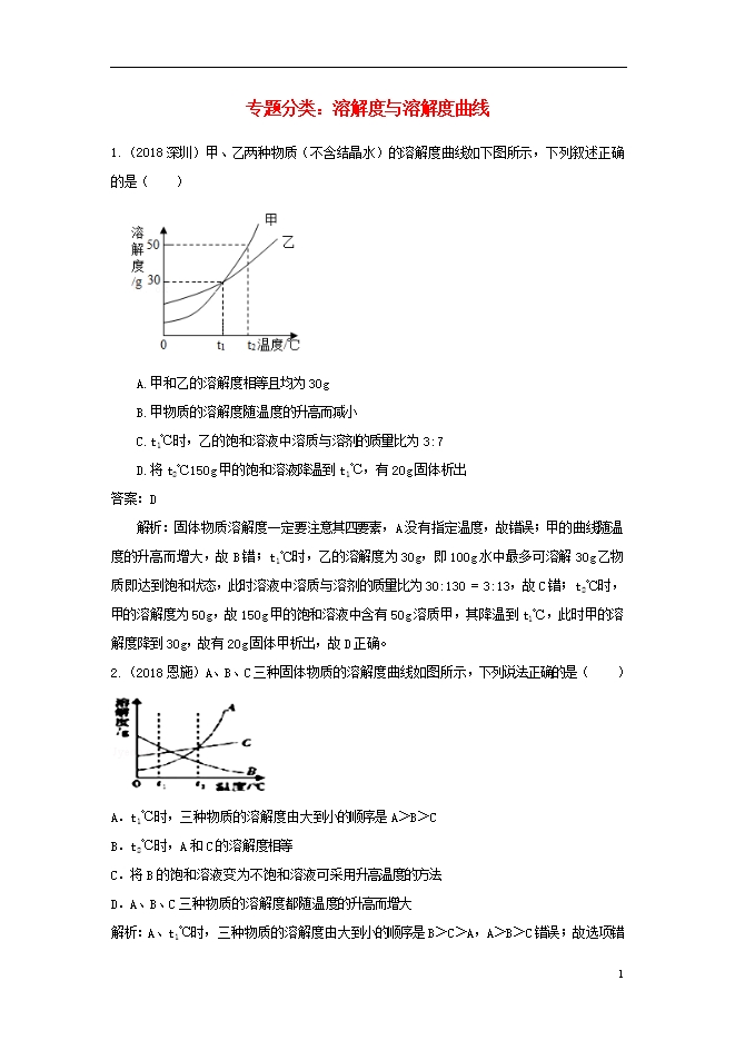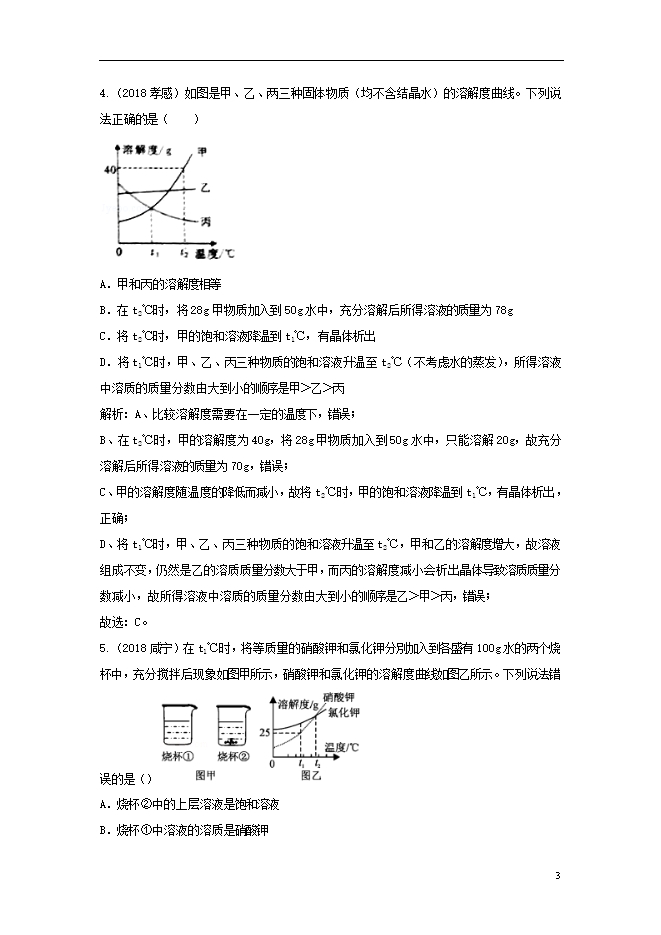 2018中考化学真题分类汇编(二)专题分类:溶解度与溶解度曲线(含解析)