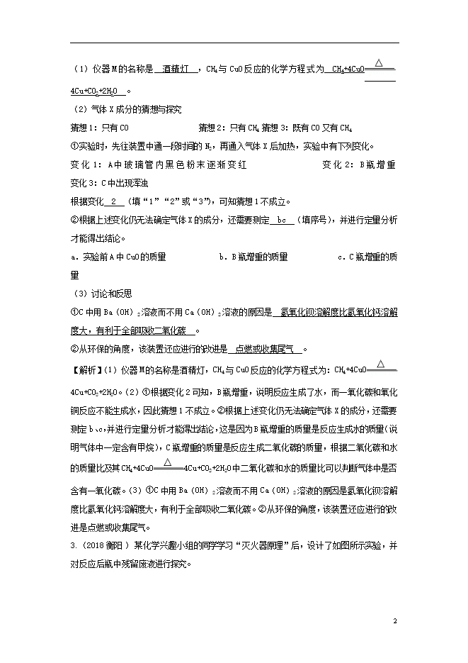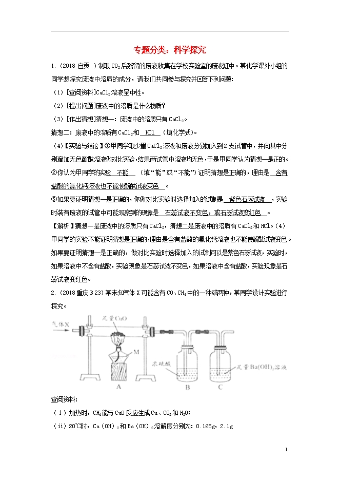 2018中考化学真题分类汇编(二)专题分类:科学探究(含解析)