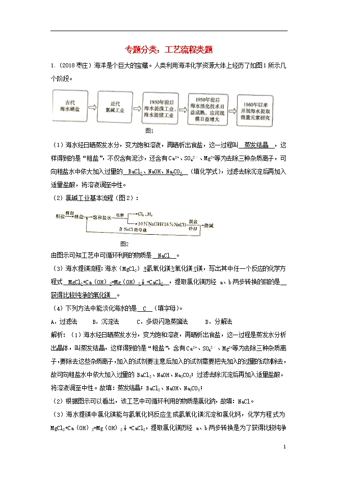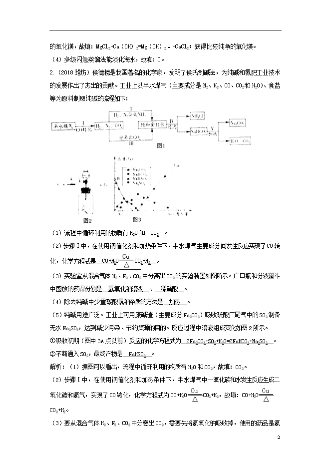 2018中考化学真题分类汇编(二)专题分类:工艺流程类题(含解析)
