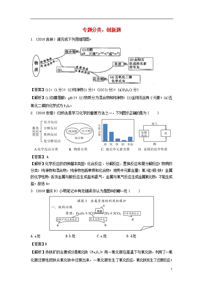 2018中考化学真题分类汇编(二)专题分类:创新题(含解析)