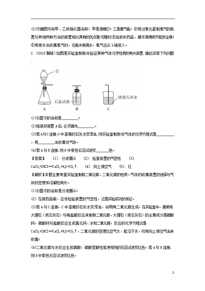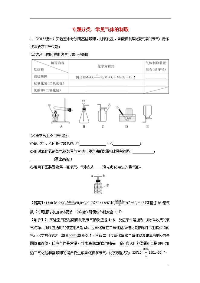2018中考化学真题分类汇编(二)专题分类:常见气体的制取(含解析)