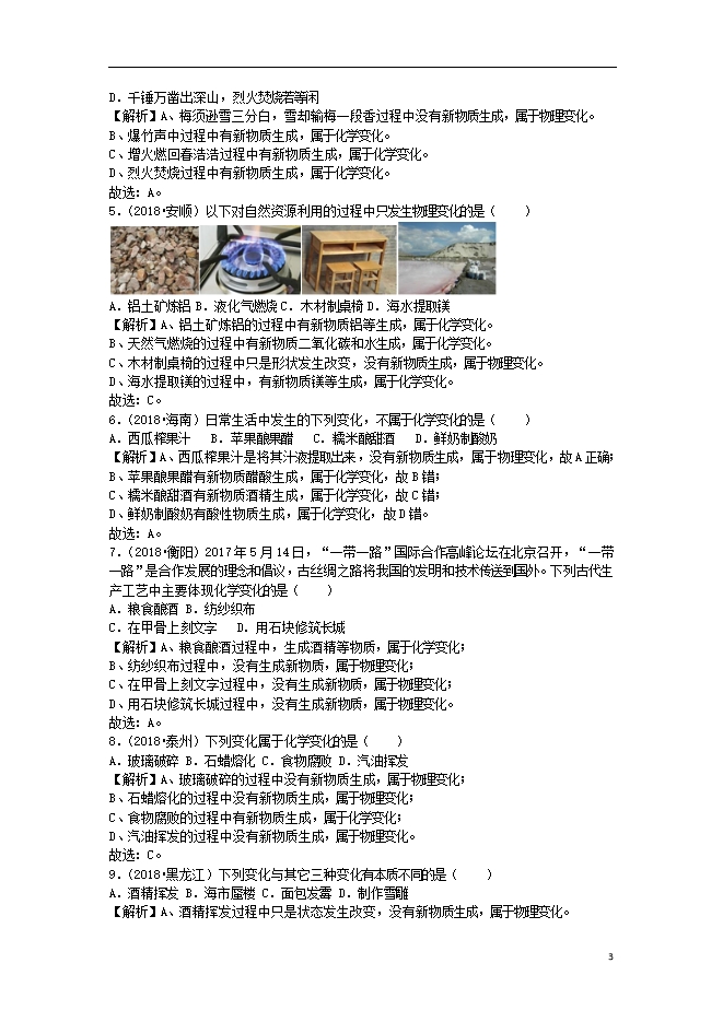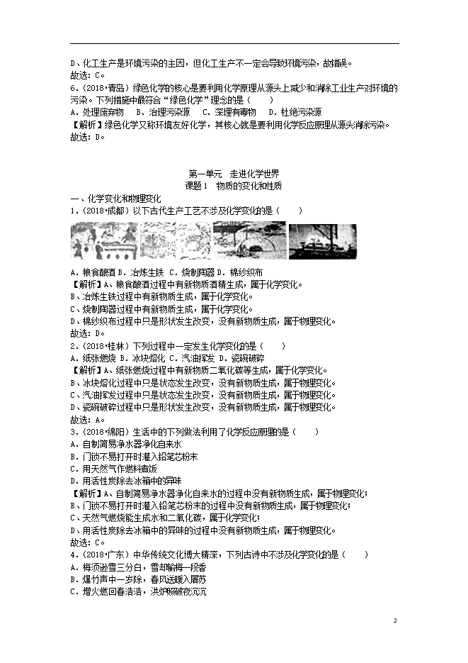 2018年中考化学真题分类汇编(三)新人教版《第一单元 走进化学世界》(含解析)