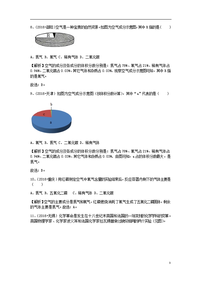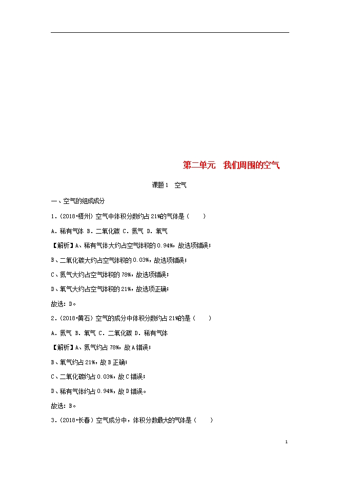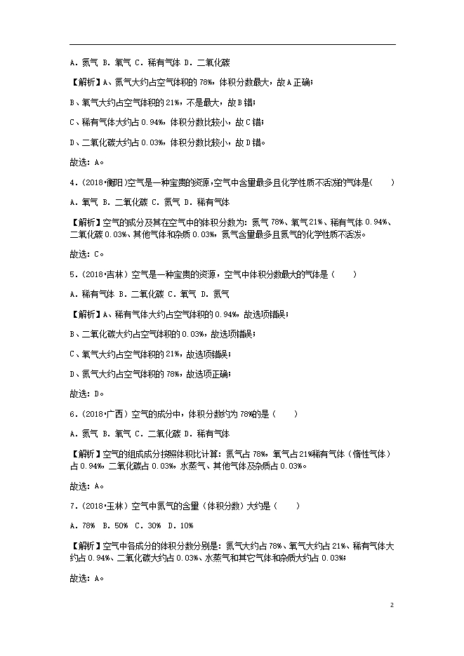 2018年中考化学真题分类汇编(三)新人教版《第二单元 我们周围的空气》(含解析)