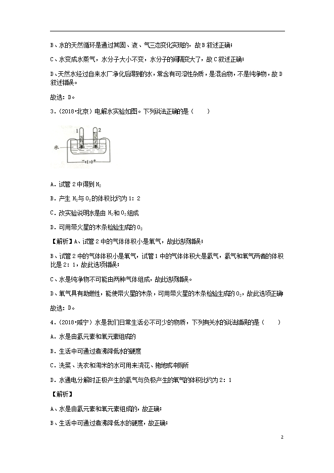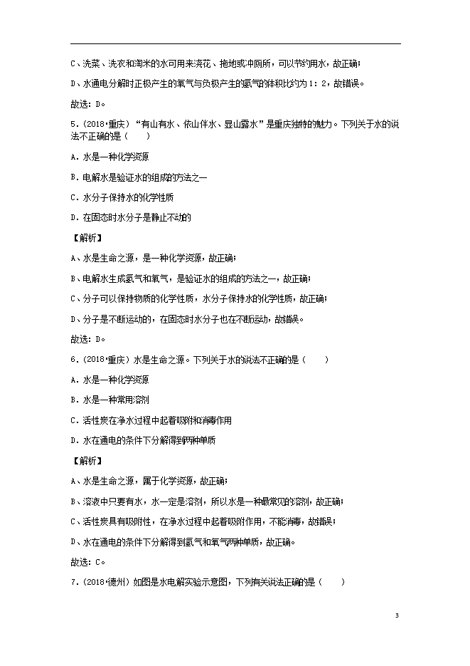 2018年中考化学真题分类汇编 (三) 新人教版《第四单元 自然界的水课题3水的组成》(含解析)