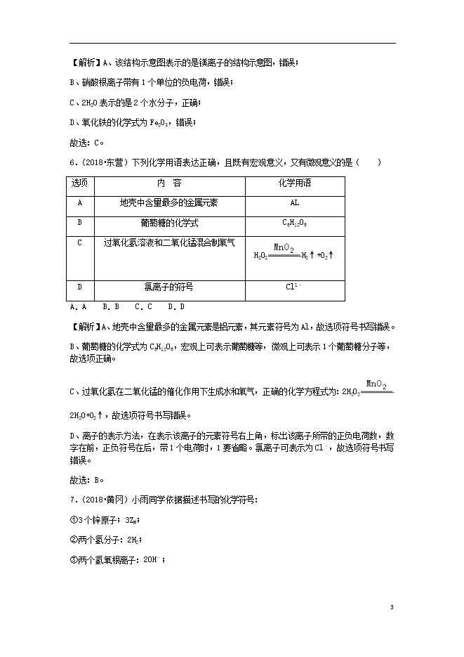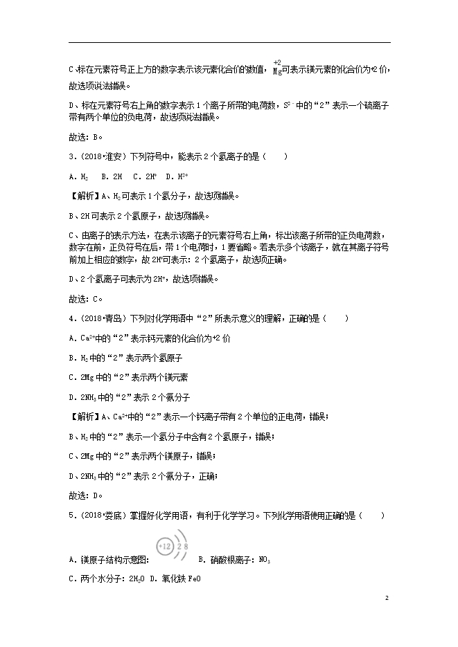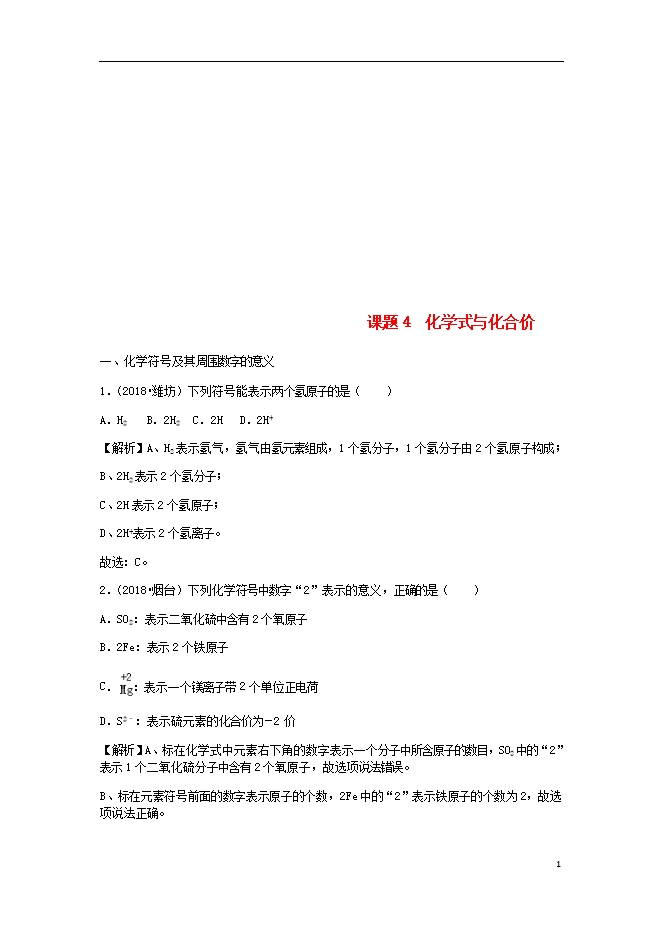 2018年中考化学真题分类汇编 (三) 新人教版《第四单元 自然界的水课题4化学式与化合价》(含解析)