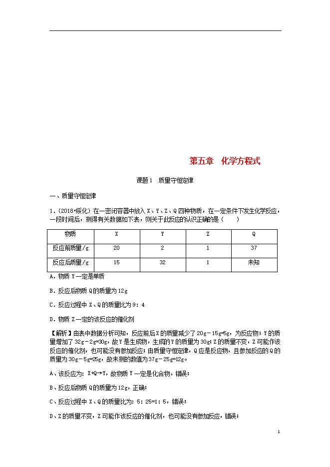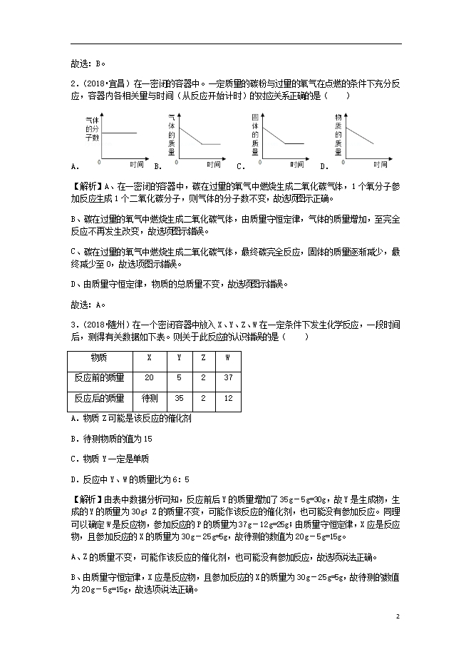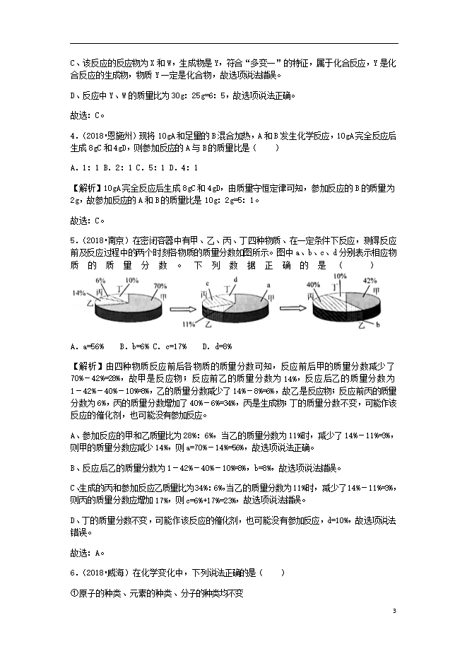 2018年中考化学真题分类汇编 (三) 新人教版《第五单元化学方程式 课题1质量守恒定律》(含解析)