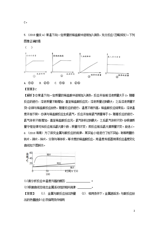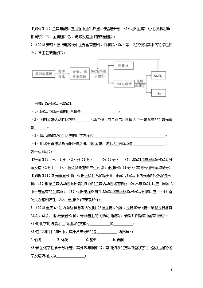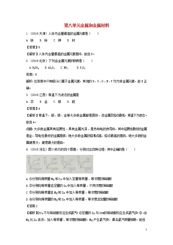 2018年中考化学真题分类汇编 (三) 新人教版《第八单元 金属和金属材料》(含解析)