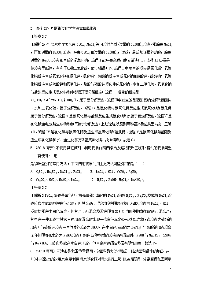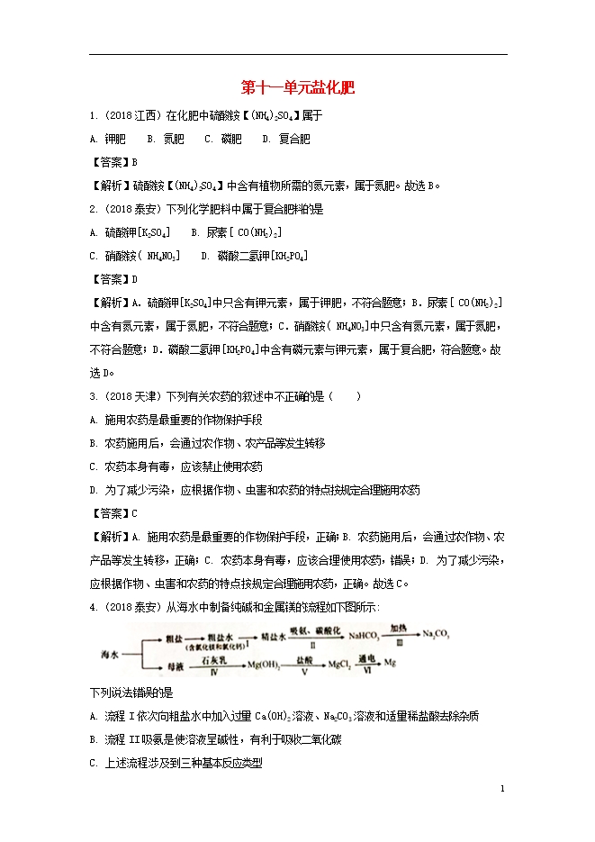 2018年中考化学真题分类汇编 (三) 新人教版《第十一单元 盐化肥》(含解析)