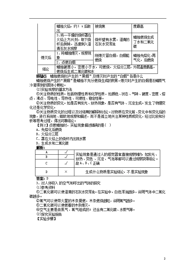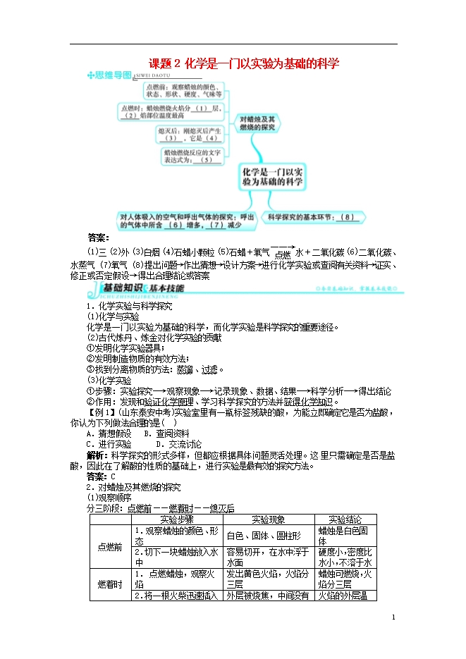 2018秋季人教版九年级化学上册《第一单元课题2 化学是一门以实验为基础的科学》同步习题(word版,含答案解析)
