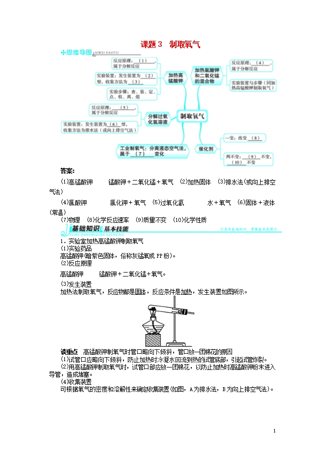 2018秋季人教版九年级化学上册《第二单元我们周围的空气课题3 制取氧气》同步习题(word版,含答案解析)