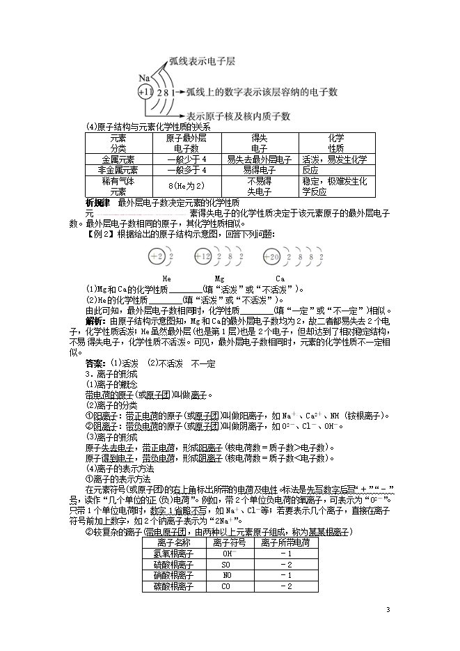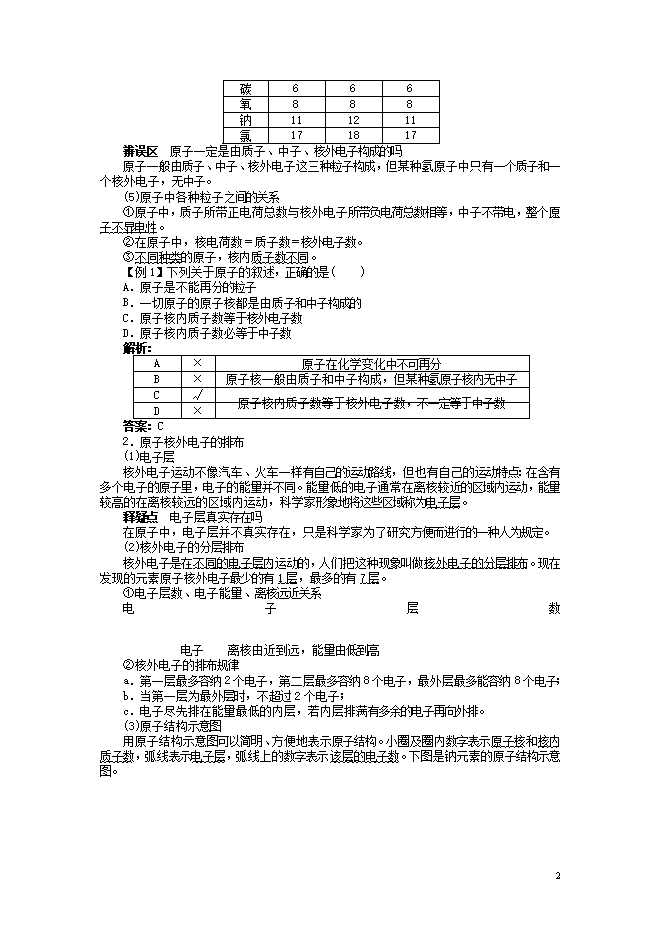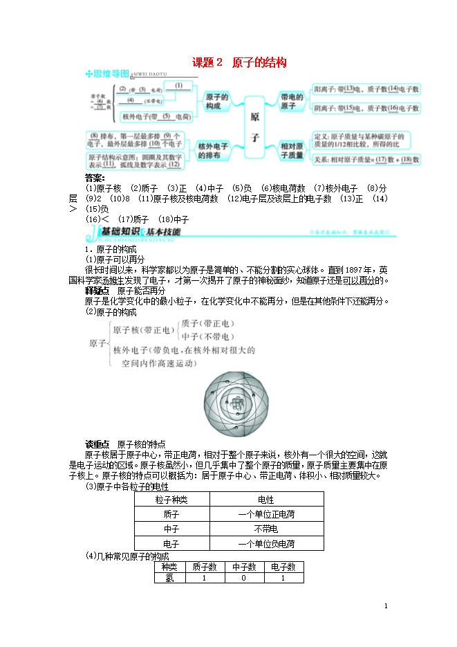 2018秋季人教版九年级化学上册《第三单元物质构成的奥秘课题2 原子的结构》同步习题(word版,含答案解析)