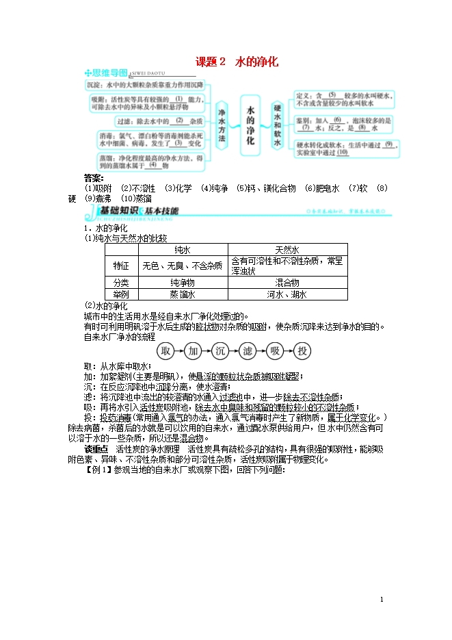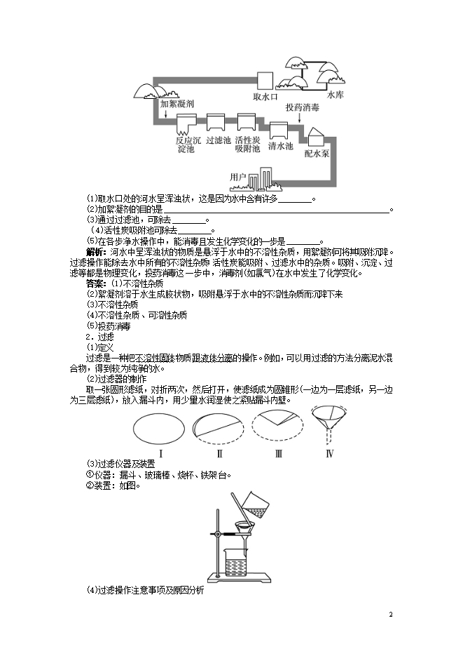 2018秋季人教版九年级化学上册《第四单元自然界的水课题2 水的净化》同步习题(word版,含答案解析)