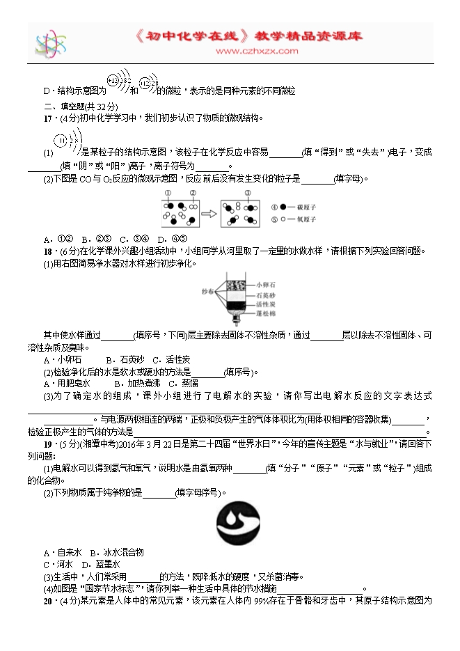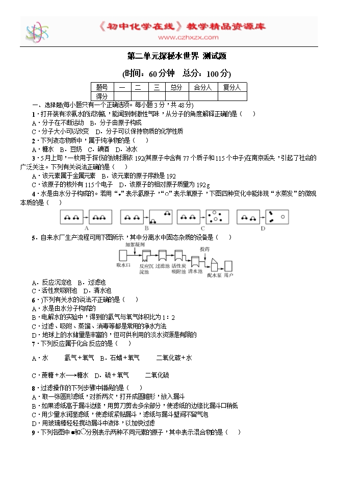 鲁教版九年级化学上册《第二单元 探秘水世界》单元测试题(word版含答案)