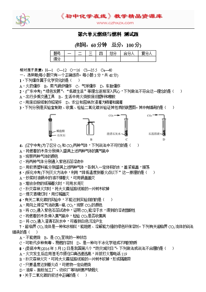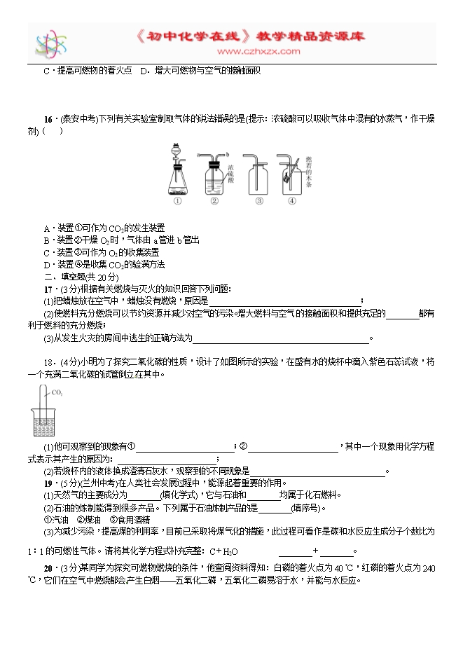 鲁教版九年级化学上册《第六单元 燃烧与燃料》单元测试题(word版含答案)