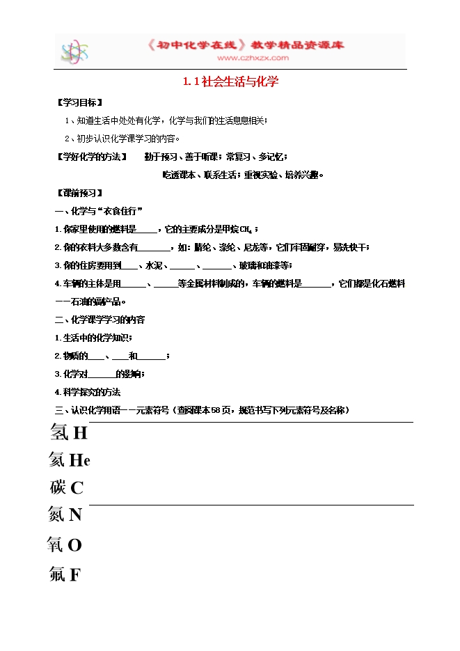 内蒙古鄂尔多斯市东胜区粤教版九年级化学上册《第一章 大家都来学化学1.1身边的化学》学案(word版无答案)
