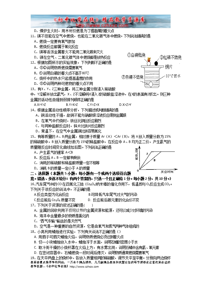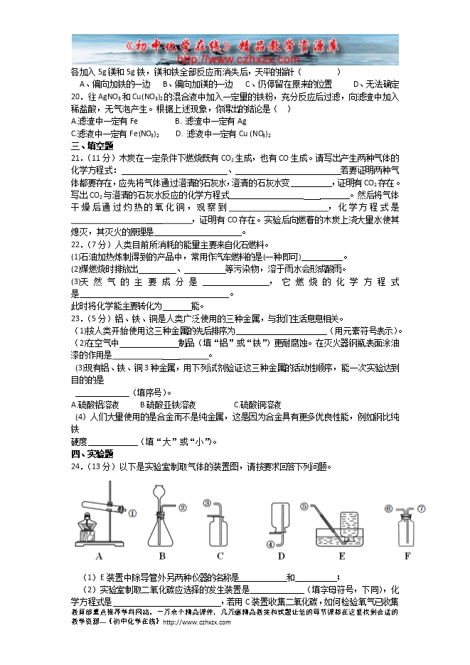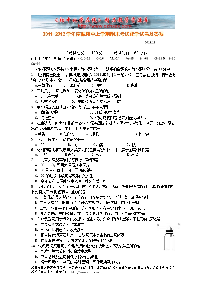2011-2012学年南航附中上学期期末考试化学试卷及答案