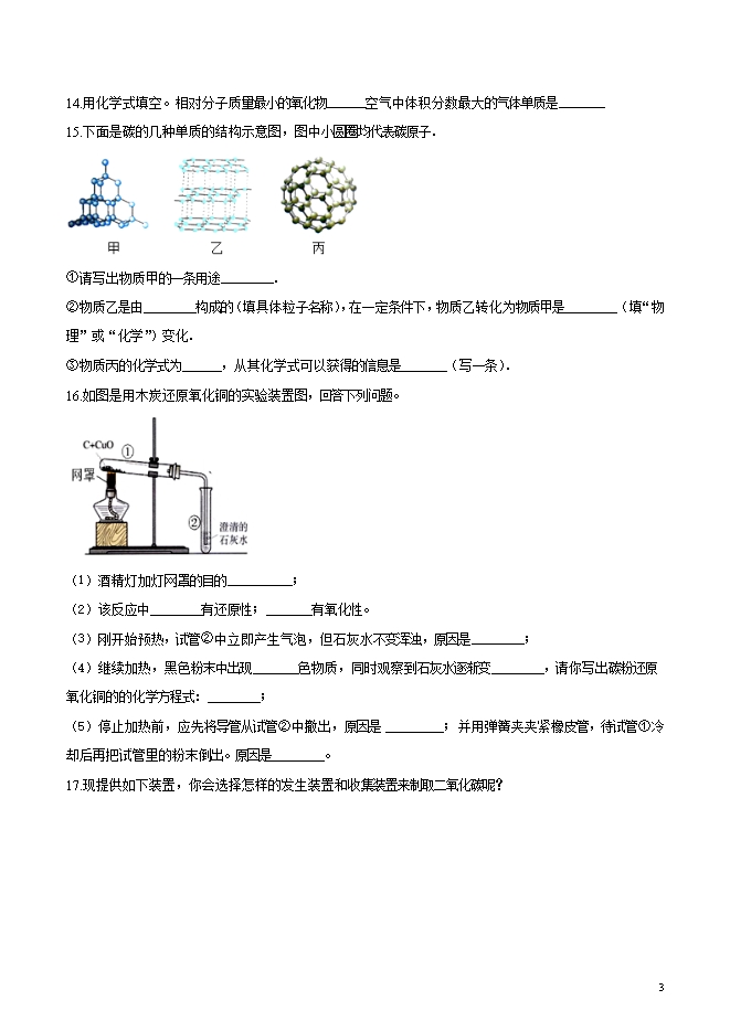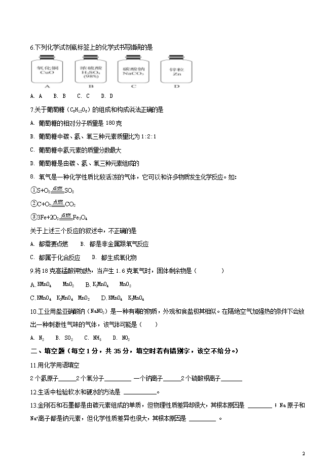 所属专辑: 《2019届九年级上学期期中考试化学试题汇总》专辑