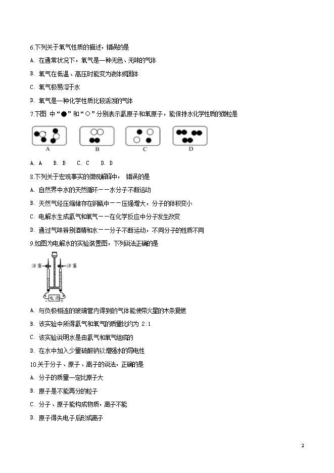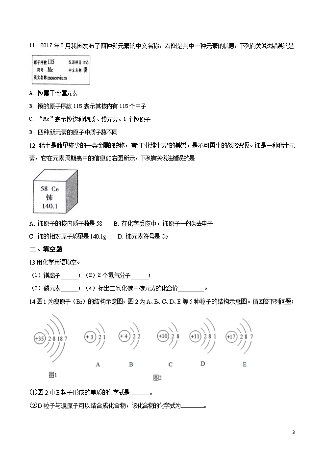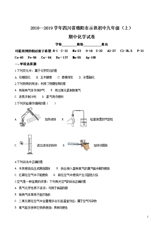 【内容简介】四川省绵阳市示范初中2019届九年级上学期期中化学试题(word版无答案)