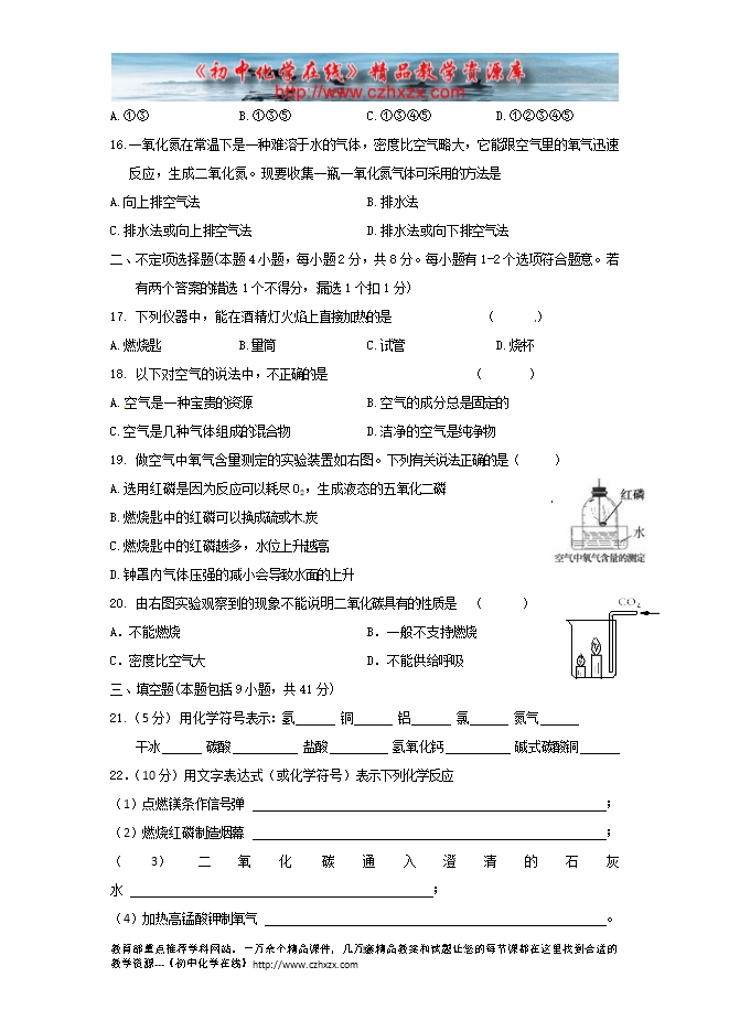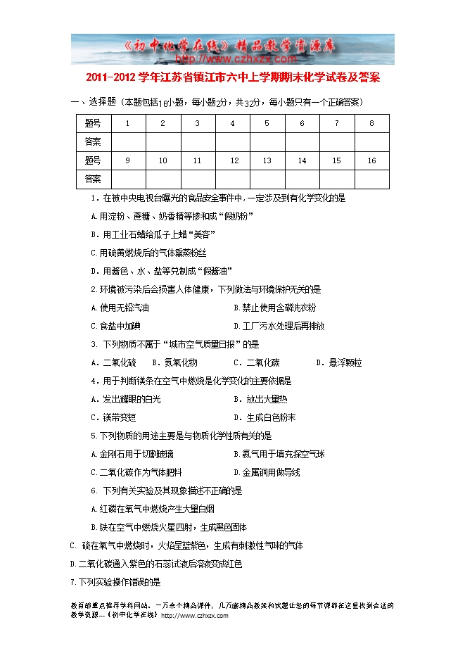 2011-2012学年江苏省镇江市六中上学期期末化学试卷及答案(沪教版)