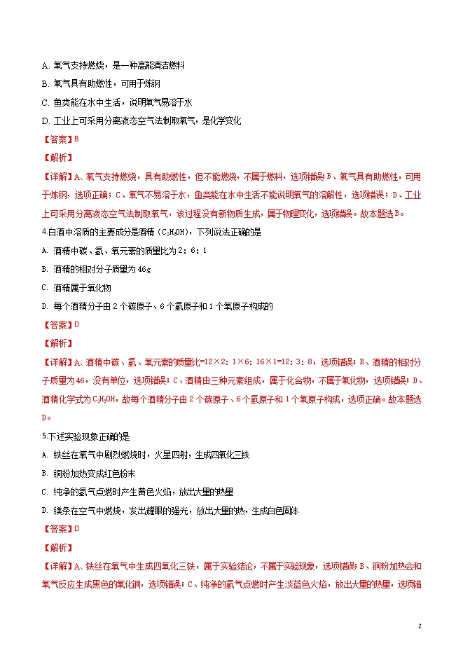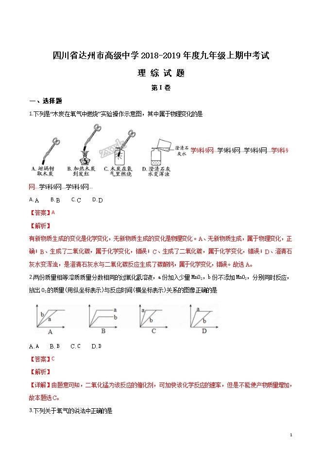 精品解析:四川省达州市高级中学2019届九年级上学期期中考试理科综合化学试题(word版含答案解析)