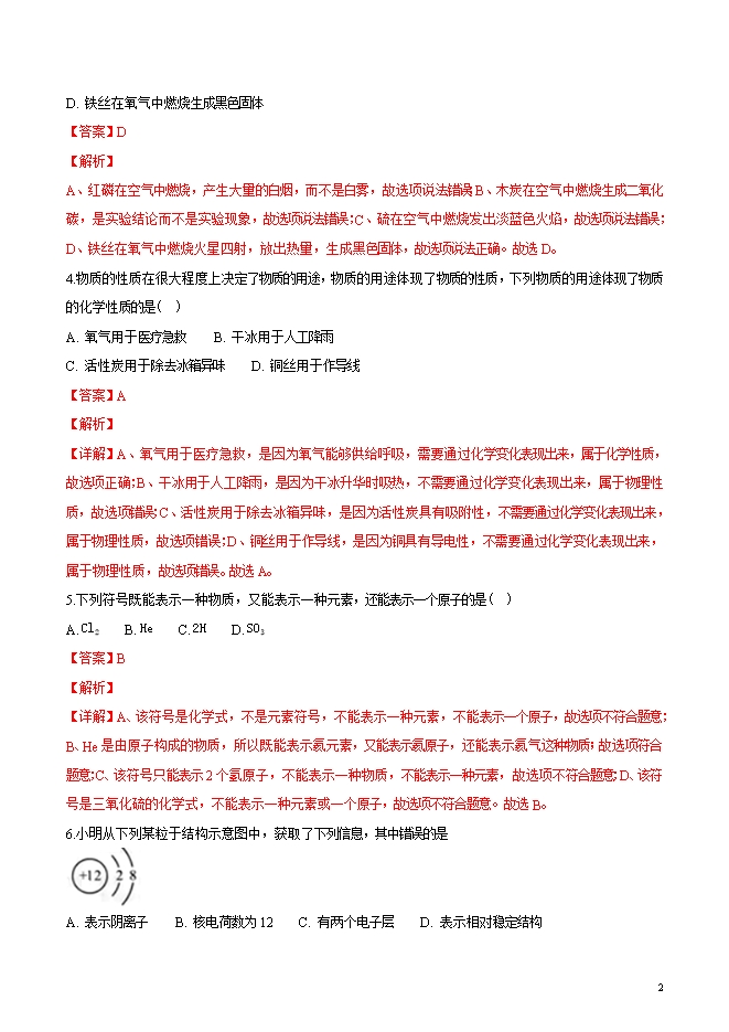 【内容简介】精品解析:贵州省遵义市达兴中学2019届九年级第一学期期中测试化学试题(word版含答案解析)