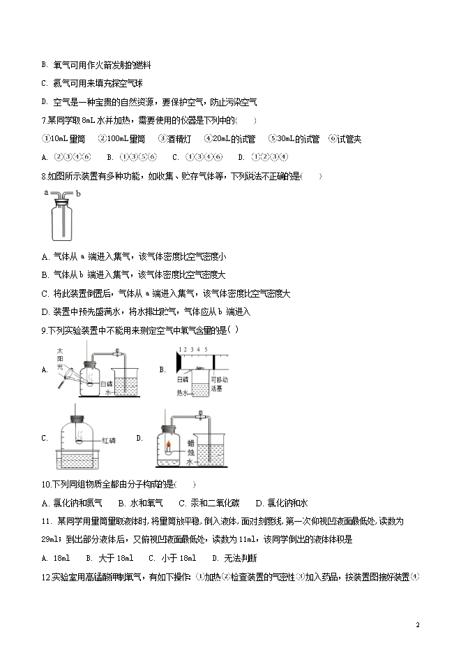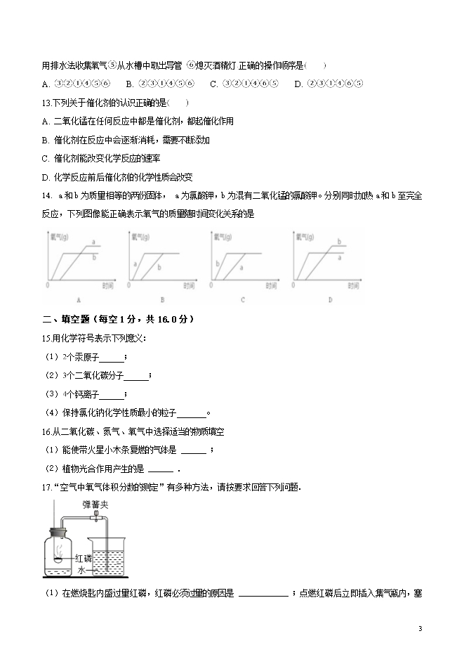 【内容简介】河南省南阳市第十三中学2019届九年级上学期第一次月考化学试题(word版无答案)